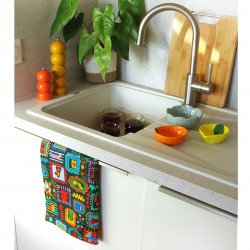 Accessoire indispensable de la cuisine, le torchon se pare de motifs colorés et engagés. Grâce à son coton absorbant il est idéal pour essuie aussi bien la vaisselle que les mains.
