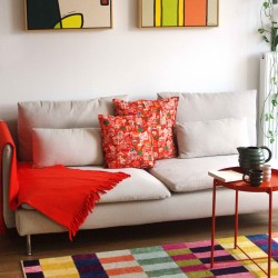 This colorful pattern, as if fruits and vegetables from the garden had been painted directly onto the fabric, brings light and vibrant colors into your home.