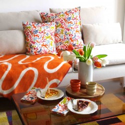 This colorful pattern, as if fruits and vegetables from the garden had been painted directly onto the fabric, brings light and vibrant colors into your home.