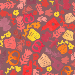 Découvrez les emblèmes alsaciens dans une ambiance pop et colorée avec le fond mauve.