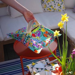 Ce motif coloré qui laisse à penser que l'on aurait peint sur le tissu les fruits et légumes de jardins amène de la lumière et pleins de couleurs dans votre intérieur.